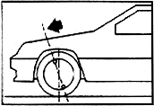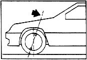 and a line drawn through the centerline of the tire when the vehicle is viewed